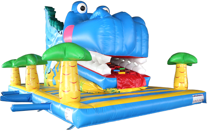 Dmuchaniec zawiera w sobie: zjeżdżalnie, plac do biegania i skakania, ściankę wspinaczkową oraz przepiękne animacje 3D.