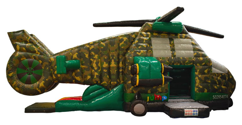 Jest to dmuchaniec o wyjątkowej charakterystyce – helikopter wojskowy. Oprócz miejsca do skakania i zabawy posiada animacje 3D w postaci bomby i żołnierzy, a także zjeżdżalnię. Idealnie sprawdzi się dla dzieci do 10 roku życia. Jednocześnie może przebywać na nim 6 osób.