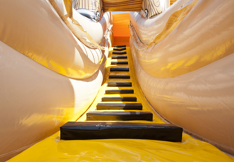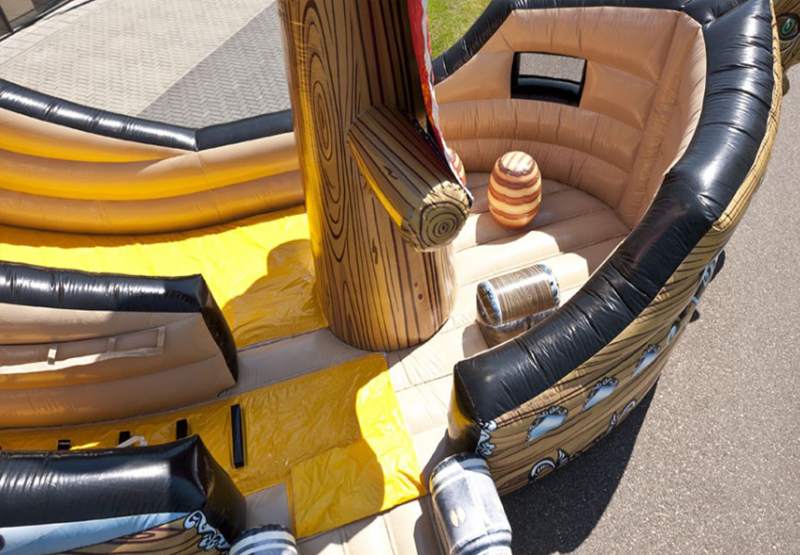 Na powierzchni do skakania umieszczony jest ogromny maszt z flagą piracką oraz dmuchane elementy do zabawy: beczki i skrzynia skarbów. Wejście znajduje się po lewej stronie atrakcji, a przy wejściu ustawione są imponujące trójwymiarowe dmuchane armaty. Dzięki szerokiej drabince oraz powierzchni do zjeżdżania, dmuchaniec ten może być użytkowany nawet przez 15 osób naraz. Dodatkowo, dla zwiększenia bezpieczeństwa, szczyt zjeżdżalni został zadaszony, aby dzieci nie miały możliwości zeskoczenia z dmuchańca.
